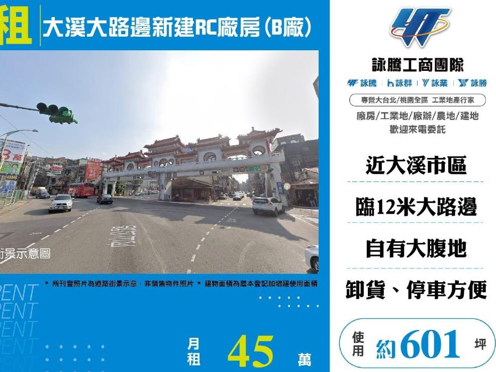 ※近交流道及大溪市區 ,交通便捷 ※臨12米大路邊,自有大腹地,卸貨、停車方便 ※挑高6米 好規劃利用 ※市區旁 標的顯著 有店面效益 ※A廠626坪 租金47.5萬/月 B廠601坪 租金45萬/月