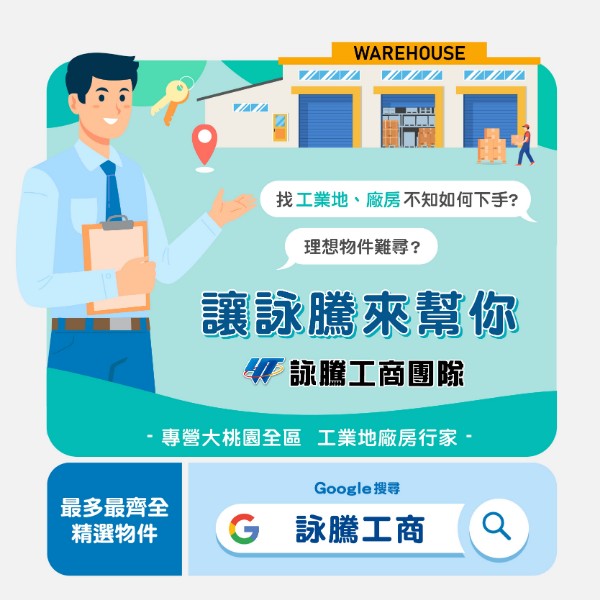 桃園廠房/桃園工業地買賣、租賃,你一定要知道的5個注意事項! 發佈: 2021/12/29 點閱: 1182 你是公司負責人,需要找工業地來設廠嗎?你是生產線經理,被公司指派任務要找出廠房出租來擴廠,卻遲遲找不到搜尋方向嗎?你的疑惑我們都了解,今天就讓【詠騰工業團隊】來告訴你桃園廠房、桃園工業地買賣、租賃最重要的-「找廠注意事項」。章節內容包含「找廠前哪些資料需要事先搜集?」以及「如何與業者溝通需求?」。相...