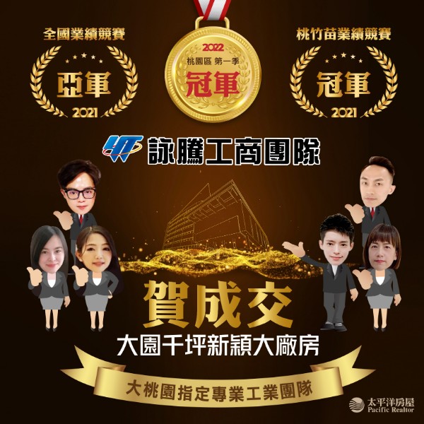 【詠群工商團隊】📣賀成交 龜山挑高倉庫 發佈: 2025/05/20 點閱: 198 太平洋詠騰破億團隊 #詠群工商地產 桃園/新北工業地廠房買賣租賃專家 2023年榮獲 #桃竹苗冠軍 #全國亞軍 2024年榮獲 #桃竹苗冠軍 #全國季軍 📣賀成交 大園挑高廠房 🧑🤝🧑恭喜 東城 🧑🤝🧑恭喜 政仁 🏆2025等您一起來締造佳績!