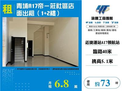 青埔A17帝ㄧ莊社區店面出租(1+2樓)