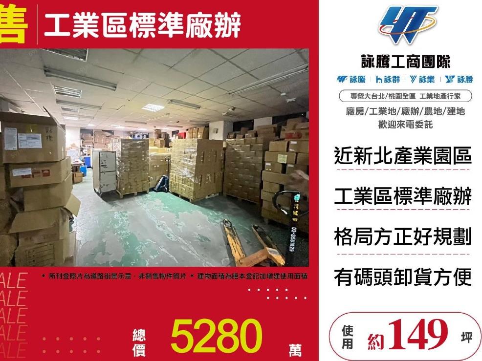 ※臨路約12米 ※挑高約3.8米 ※近新北產業園區捷運站.64快速道路 ※工業區標準廠辦 ※格局方正好規劃 有客貨梯好利用 ※有碼頭卸貨方便 附車位