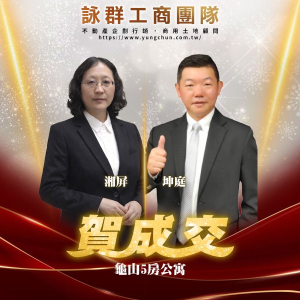 【詠群工商團隊】📣賀成交 龜山5房公寓