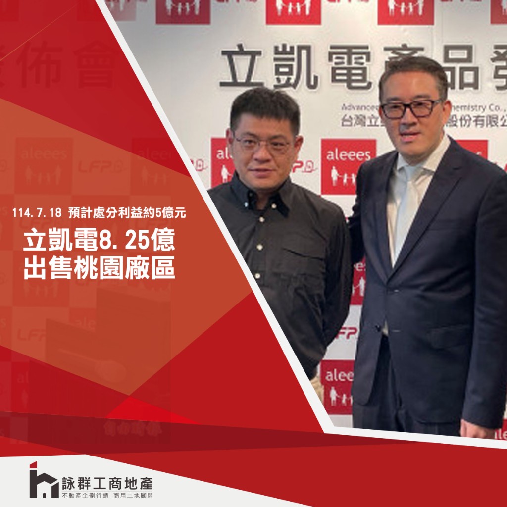 立凱-KY(5227)17日晚上召開重訊記者會,代重要子公司台灣立凱電能科技股份有限公司說明標售桃園市桃園區興華路2-1號土地及廠房,本次不動產標售案業於今日下午5點半整於信義全球資產管理股份有限公司會議室開標,於開標後以新台幣8.2518億元(未稅)之最高價出售,並與出價對象安騰資產有限公司完成簽訂不動產買賣契約書。