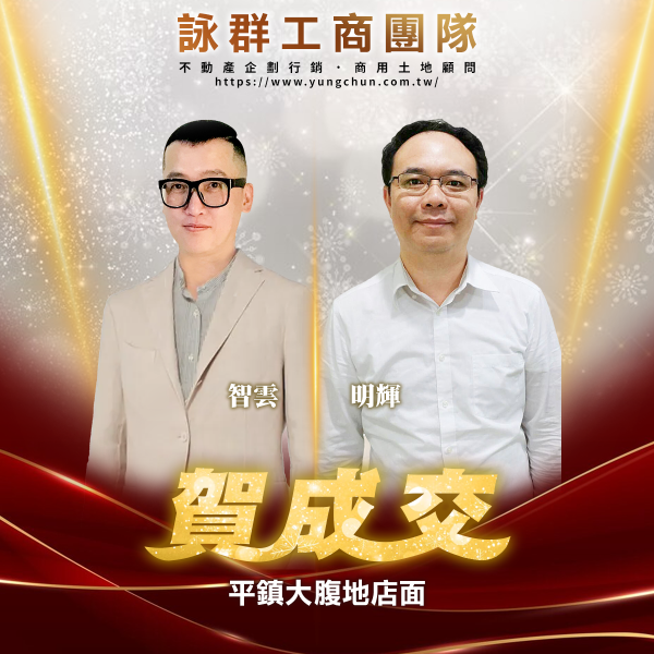 【詠群工商團隊】📣賀成交 平鎮大腹地店面